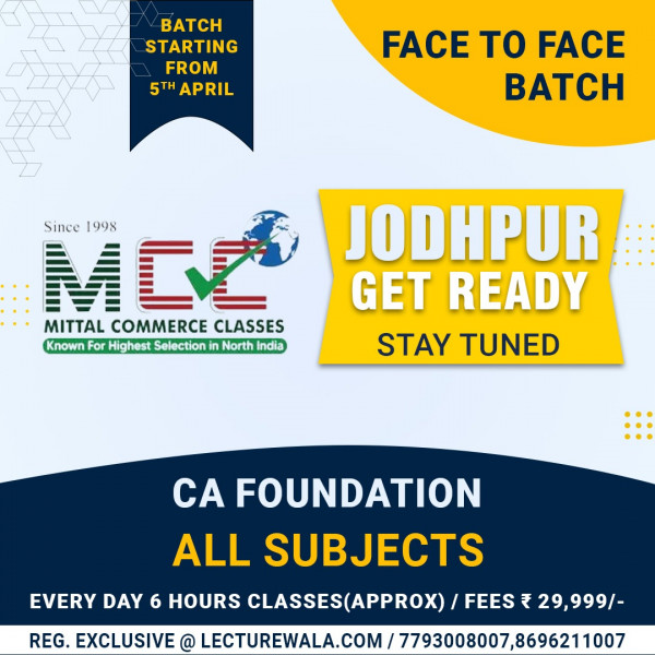 CA Foundation All Subjects Combo Face To Face Regular Batch IN Jodhpur By Mittal Commerce Classes.