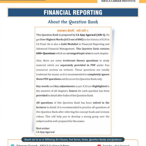 CA Ajay Agarwal Financial Reporting Question Book For CA Final: Study Material