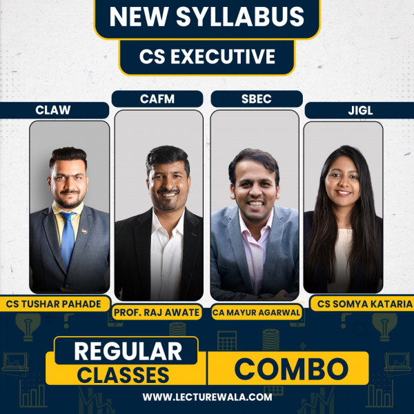 CS Tushar Pahade CLAW Prof. Raj Awate CAFMV CA Mayur Agarwal SBIL & CS Somya Kataria JIGL Regular Combo Classes For CS Executive Online Classes